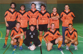 El primer equipo El primer equipo lo formaban: Mallén bajo palos, que sigue pero ha cambiado a jugador de campo. Mañas y Lobo en defensa. Pasan los años pero todo sigue igual. López, participaba en la defensa , una lesión y la afición a la caza lo alejaron de los terrenos de juego. Amato, jugador polivalente, jugó varios años pero tuvo que dejarlo por problemas laborales. Catalán en plena forma desbordaba a los contrarios, sigue jugando pero no desborda con tanta facilidad. Nixtron, jugador cellano que sólo participó este año dejó huella de su gran calidad. Marco y David pareja atacante que siguen haciendo estragos en la actualidad. Toni Ariño, atacante con gran definición, abandonó el equipo, para capitanear la Ronal.
